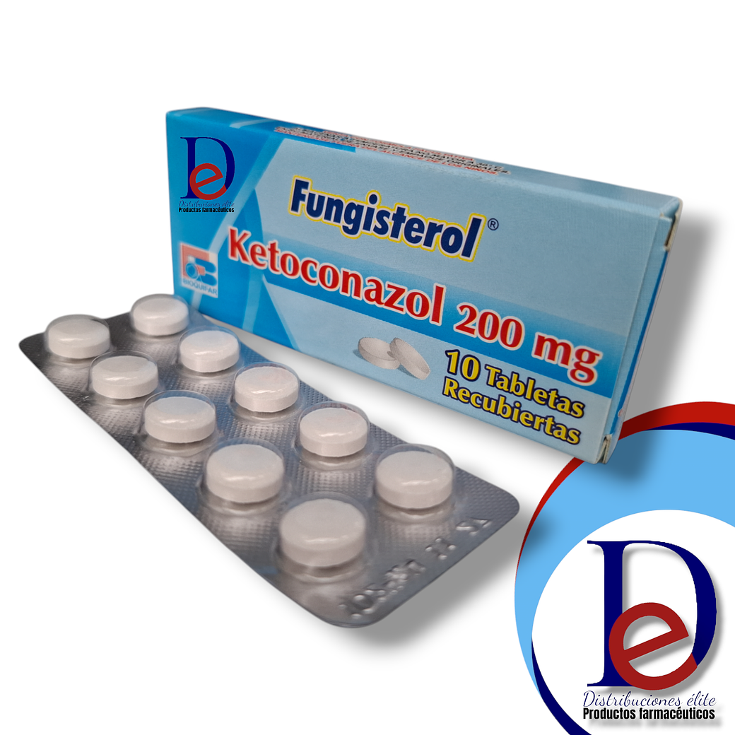 FUNGISTEROL 200 MG, presentado en un conveniente empaque de 10 tabletas, es un tratamiento eficaz basado en Ketoconazol, ideal para combatir infecciones fúngicas y otras condiciones dérmicas ocasionadas por hongos. Fabricado por BIOQUIFAR, este producto cuenta con la calidad y confianza que caracteriza a la marca.